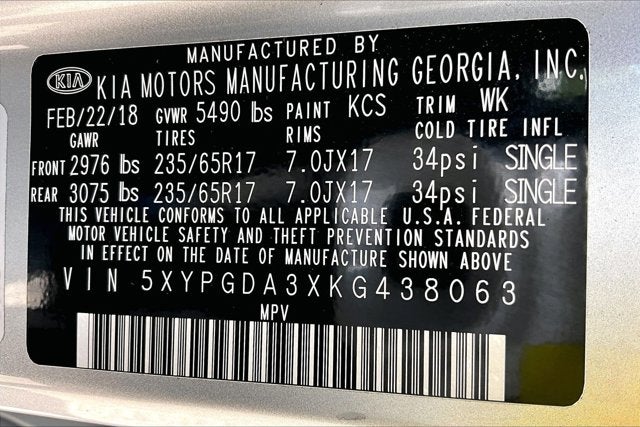 - Vehicle Name: Kia Sorento