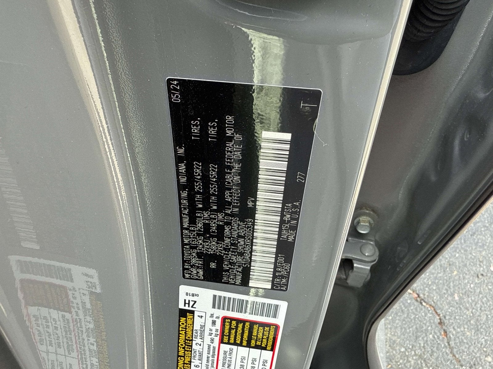 - Front Tire Size: P255/45VR22